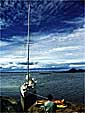 En bit ifrån lägger sig en annan Smaragd. Tyvärr verkar de inte ha ekolod, de går på hela tiden de ska in till land. |  |